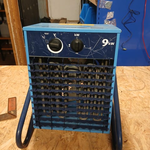 El-Björn 2 kW elvärmefläkt i blå färg med bärhandtag. Utrustad med två vred för temperatur- och effektinställning.. Bra skick