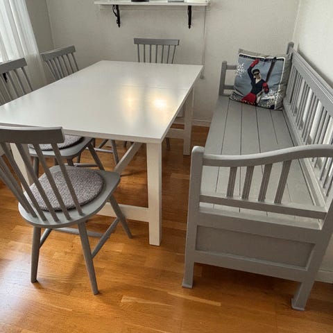 40 skåp, 60 skåp, 80 skåp med ho/blandare, 60 diskmaskin, 80 skåp, 3st 60 sittbänk (höjd 53 med skiva) 60 skåp.