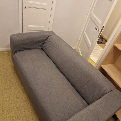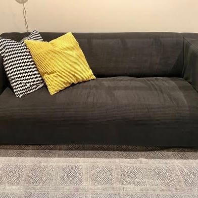 2-sits soffa KLIPPAN från Ikea. Inköpt förra året. Avtag- och tvättbart överdrag i svart/mörkgrå. Slitstarka metallfjädrar i sitsen ger soffan en fjädrande komfort