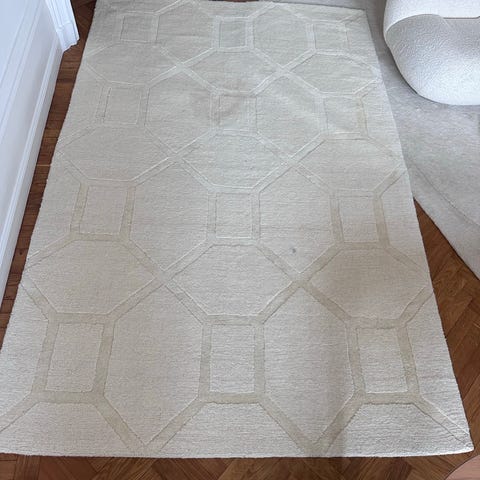 Matta från Åhléns 80 % ull och 20% bomull. Nytvättad. Mått 200 cm X 136 cm.