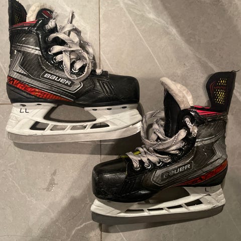 Bauer ishockeyskridskor för barn i storlek 31/32. Skridskorna är svarta med gröna detaljer och har flera spännen för justerbar passform.