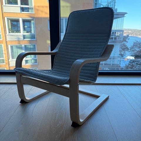 IKEA barnfåtölj POÄNG i trä med grått tyg