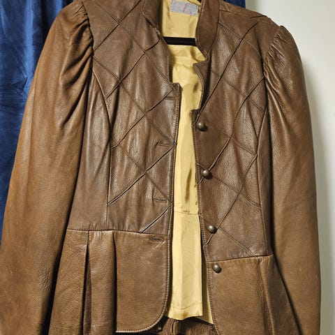 Klänning/kappa i mycket mjukt älgskinn designad av Amie (K.H.L.) i storlek 38 aldrig använd.