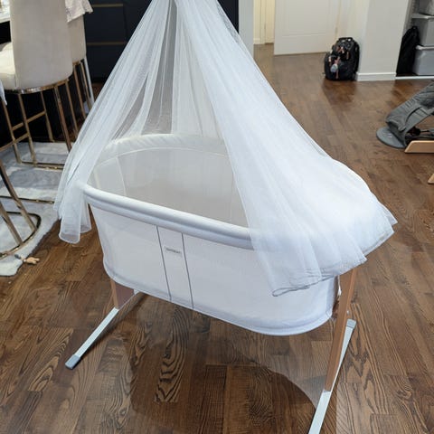 Vaggan är sparsamt använd, vi har haft den som extra vilplats i vardagsrummet.