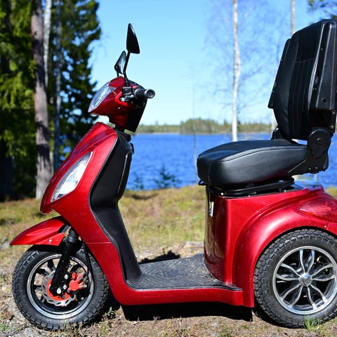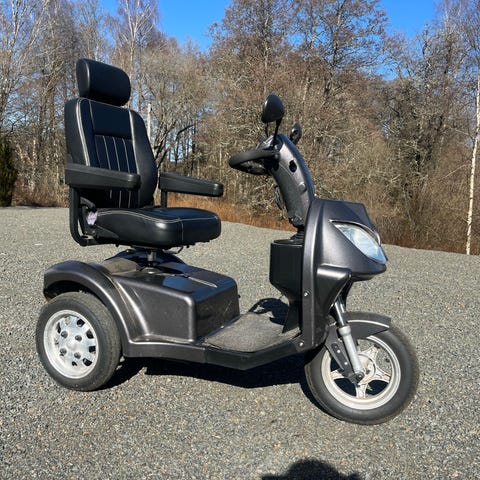 Notering: Höger fram däck vobblar lite när man kör, men scootern är fortfarande körbar. Scootern har stått ett tag i ett garage varav däcket förmodligen blivit lite dåligt.