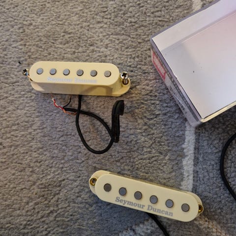 Humbucker set i vitt och creme, båda fungerar utan problem. Båda mikrofonerna var kopplade med coil split.