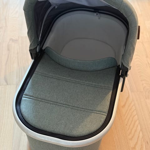 Liggdelen fästs smidigt och enkelt på vagnens chassi med hjälp av de medföljande adaptrarna, och skapar en mysig och säker plats speciellt anpassad för nyfödda bebisar och upp till omkring 6 månaders ålder.