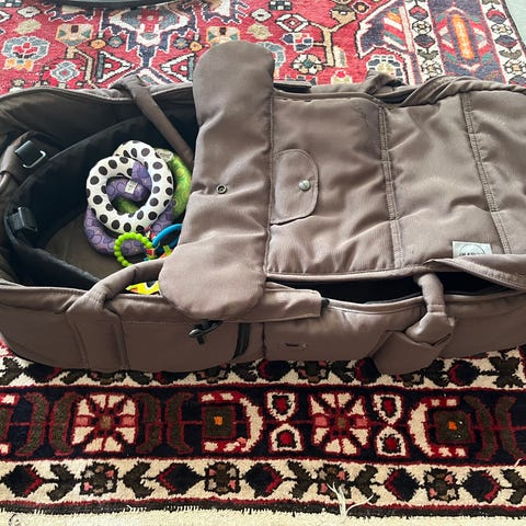 Den stadiga sufletten har ett bärhandtag längst upp som gör liggdelen enkel att vid behov ta med sig upp för trappor, in på restauranger och så vidare.