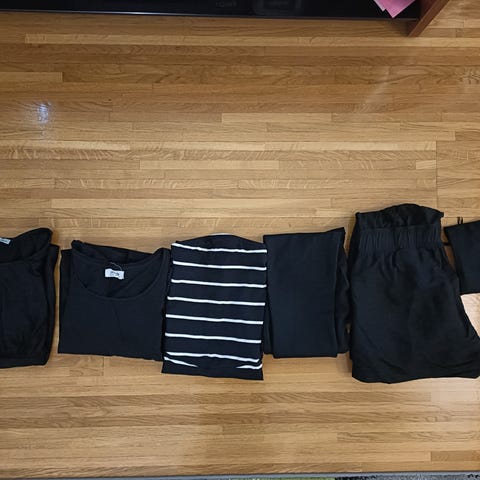 Gravid och amningskläder. Byxor storlek 38. Gravidklänning+ linne strlk S. Amningst-shirt +långärmad tröja strlk S.