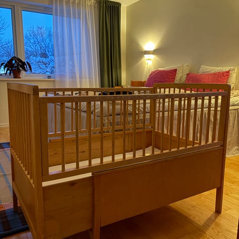 Spjälsängar barnsäng med inbyggda förvaringslådor. Sängen är avsedd för barn och har ett robust trämaterial. Designad för att ge en säker och funktionell sovplats för små barn.
