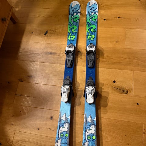 Slalomskidorna är nyvallade och stålkanterna är nyslipade. Bindningen är enkel att justera efter pjäxornas storlek.