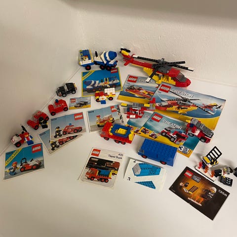 Blandat Lego. Små och stora bitar, även tekniska bitar. Massor av gubbar, ett par båtar. Ett Creator öppnad låda men oöppnade påsar.
