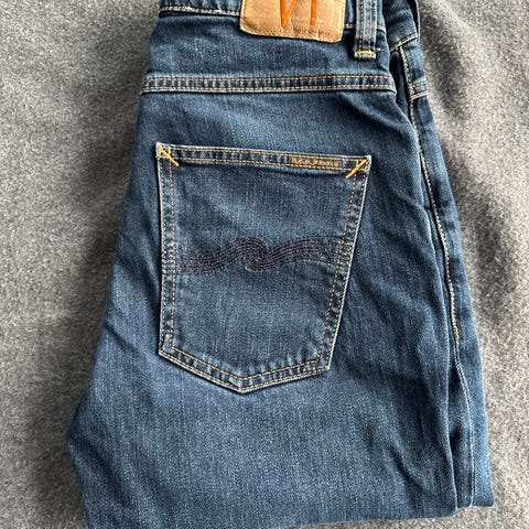 Nudie Jeans Indigo Myth jeans i blå färg, storlek W30/34. Tillverkade i bomull med en blandning av elastan för komfort och passform. Passar för män och är av modellen Tight Fit.