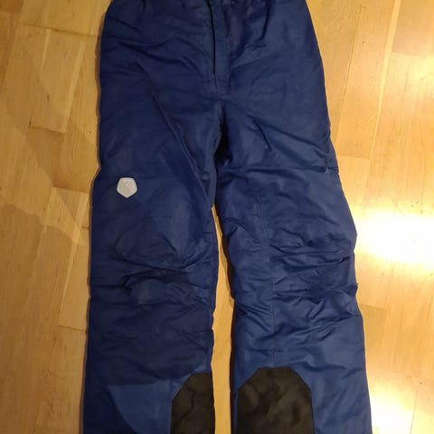 Lindex fodrade barnbyxor i blå färg, tillverkade i polyester. Passar barn i storlek 98 och är utformade för unisexanvändning. Byxorna har justerbara hängslen och förstärkningar vid knäna. De är utrustade med reflexdetaljer för ökad synlighet och elastiska benslut med fotband för bättre passform.