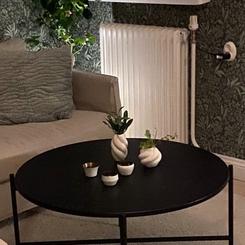 Inköpt för ca 1 år sedan, säljes pga vi har bytt soffa och ska köpa ett nytt soffbord. I nyskick, då soffgruppen som stod i rummet knappt användes. Se bifogad bild för mått.