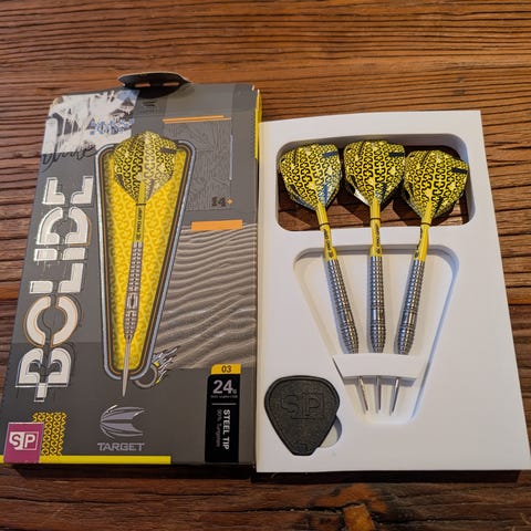 Har tyvärr tappat bort information om märke och modell men jag tror det är Harrows och att de är köpta på Darts corner för något år sedan.