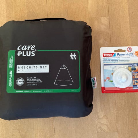 Care Plus Myggnät för skydd mot myggor och insekter. Produkten är svart och levereras i en kompakt förvaringspåse. Jag säljer två stycken myggnät som rymmer två personer och ett myggnät för en person. Myggnäten inhandlades i december 2025, och är varken uppackade eller använda. 300 kr/st för de stora myggnäten och 200 kr för enmansnätet.