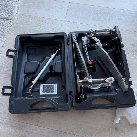 Knappt använd Czarcie Kopyto dubbelpedal, inköpt 2023-06. Hamnade på hyllan då bandet tog en paus direkt efter de blev levererade och blivit ståendes sedan dess.