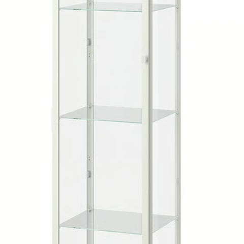 Fint vitrinskåp ur IKEAs Stockholm serie, design Ola Wihlborg. Skåpet är i fint använt skick, en skada på insidan av dörrkanten, som inte syns, så bild. Tre hyllor i glas medföljer, i fint skick.