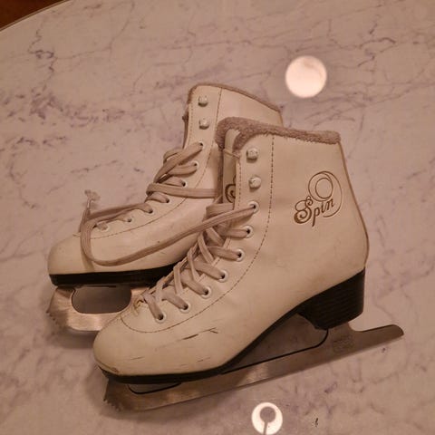 Konståkningsskridskor från Spin, inköpta på Stadium, i stl 33 (22,1 cm enligt etikett). Inköpta på Stadium för 499 sek, använda en säsong endast och i mycket fint skick.
