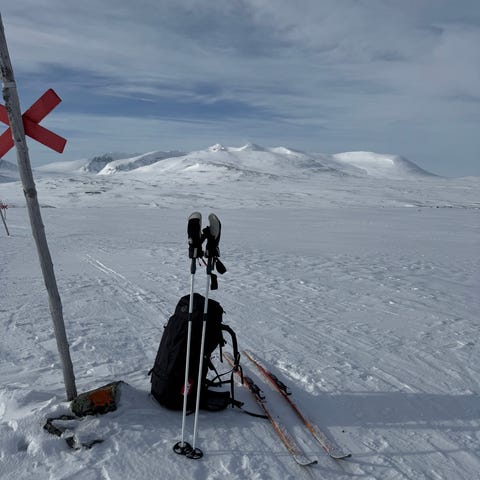 Åsnes Sondre turskidor fjällskidor med stålkant och NN-bindning i fint begagnat skick.