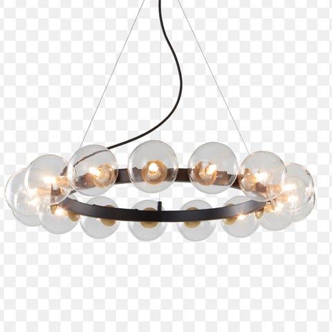 Lampa i smide är 50 cm i diameter och 50 cm hög plus kedjan