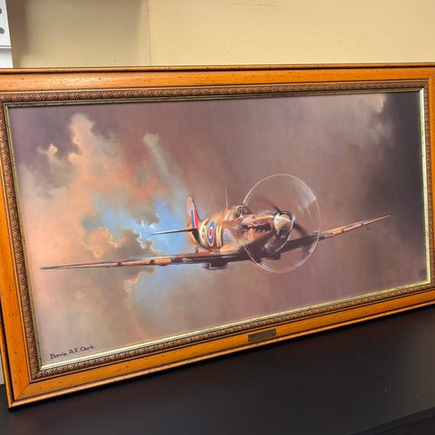 Snygg tavla med måtten 107 x 66 cm med motiv av ett Spitfire-plan.