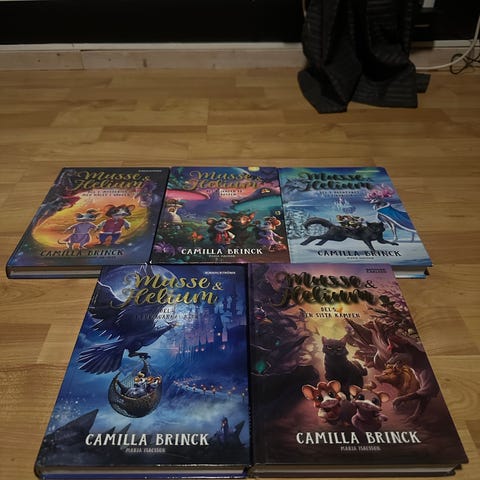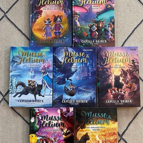 Camilla Brincks populära Musse & Helium del 1 & 2 samt Luna del 1,7,8 & 9, hundmannen och sommarskuggan. Böckerna är illustrerade och riktar sig till barn.