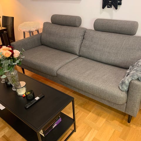 Helt ok men använd tresits soffa med schäslong på höger sida.