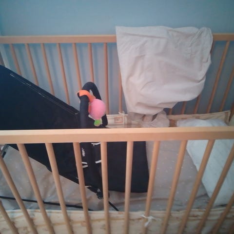 Madrass, madrasskydd och spjälskydd ingår i köpet.