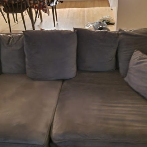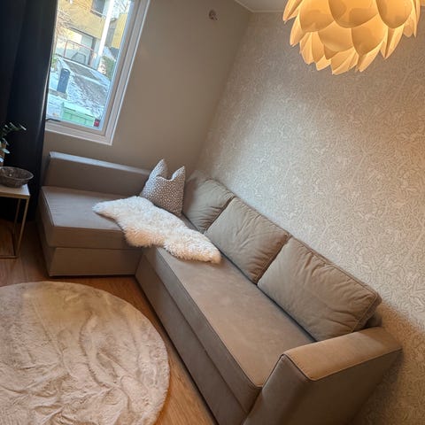 Ikeas schäslong Kivik i gråsvart tyg säljes och hämtas i Hässleholm.