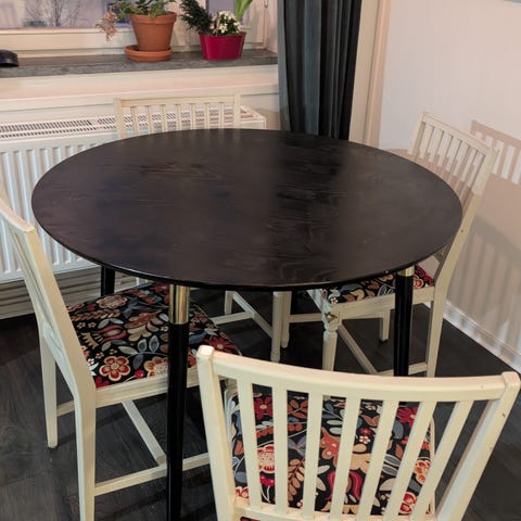 Bordet är lite ostadigt men har funkat bra som matbord mot vägg.