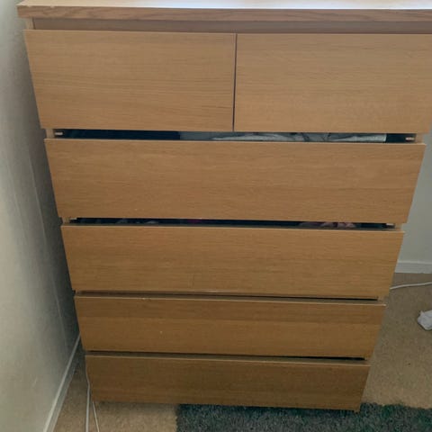 Använd i källaren för vantar etc. Något gulnad på listen högst upp. Syns på bild.