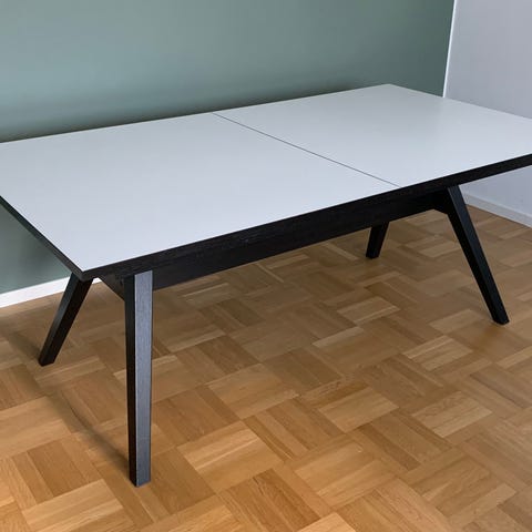 Med sin rektangulära form och möjlighet att förlänga med två extra iläggsskivor kan bordet enkelt anpassas till dina behov. Det har plats för 6 personer dagligen, men kan snabbt utökas för att rymma upp till 10 gäster när det behövs.