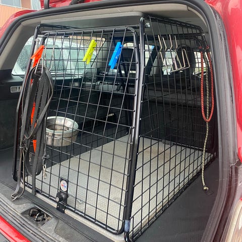 Artfex Medium hundbur i svart metall med nätstruktur och bottenplatta i trä. Buren är låsbar och två nycklar medföljer. Originaldyna medföljer där överdraget kan maskintvättas.