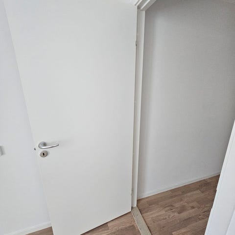 6st vita innerdörrar (ej karm). Handtag till alla dörrar ingår. 2st även med vred för toalett.