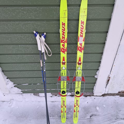 Ett par vallningsfria Fischer 120 cm med stavar 80 cm samt ett par vallningsfria McKinley (Intersports eget märke) 140 cm med stavar 110 cm. Varje par till salu för 250 kr. Endast avhämtning.