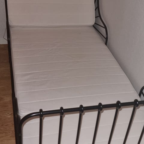 Mysig koja/säng i trä utformad som ett hus. Passar för barnrum och ger en liten myshörna. Sängen är tillverkad i trä och har en blå färg. Madrass ingår. Ej kuddar och filtar.