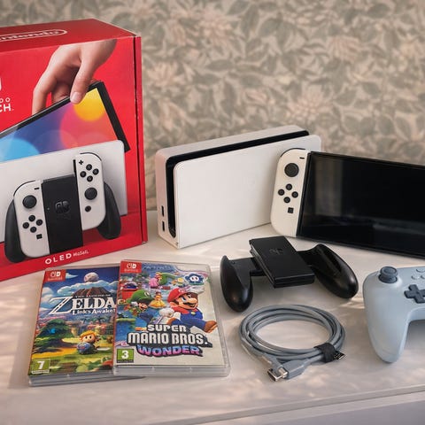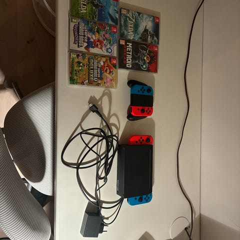 Nintendo Switch Spelkonsol med Joy-Con, laddare och spel