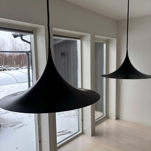 Svart semi pendel lampa från Gubi 47 cm i diameter. Fint skick!