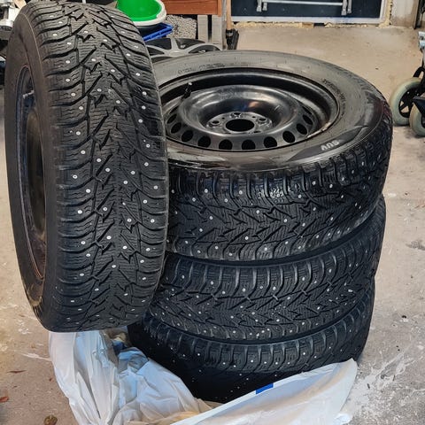 Säljer nästan nya däck Nokia haklapppeliitta 9 med plåt fälgar till VW Golf, 195/65-15 har suttit på en Volkswagen Golf 2015, Passar nästan alla golf bilar, och många andra. Hjulen finns i Norrköping