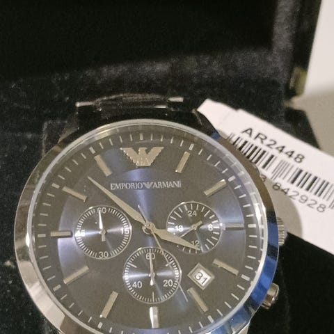Armani Emporio Armani herrklocka i silverfärgat material. Klockan har en rund urtavla med datumvisning och en metallarmband. Levereras med originalförpackning och extra länkar för justering av storlek.
