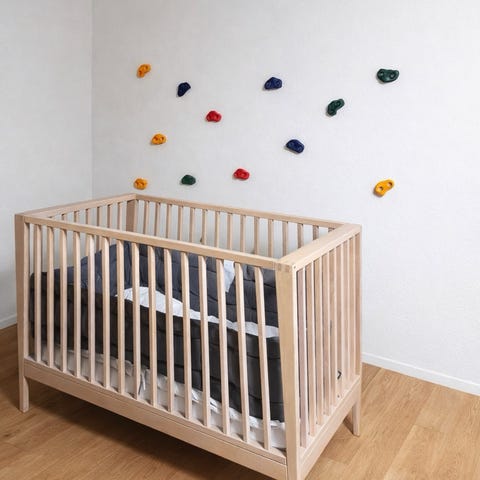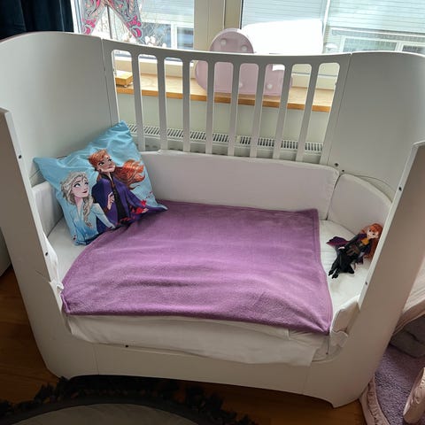 Sängen har fyra flexibla lägen. Använd det översta läget med upphöjd botten under barnets första månader för att vara snäll mot din rygg när du lägger ner barnet. När barnet blir större och börjar ställa sig upp rekommenderar vi att du sänker botten. Du kan också ta bort ena sidan så att barnet själv kan krypa in och ut ur sängen. När barnet har vuxit ur spjälsängen kan du enkelt göra om den till en mysig liten soffa.
