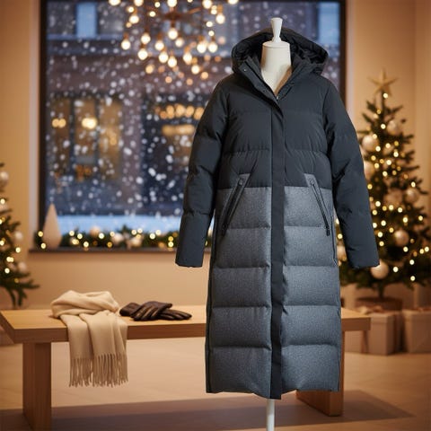 marin alpin varm rosa täckjacka lång fodrad jacka vinterjacka luva flera fickor