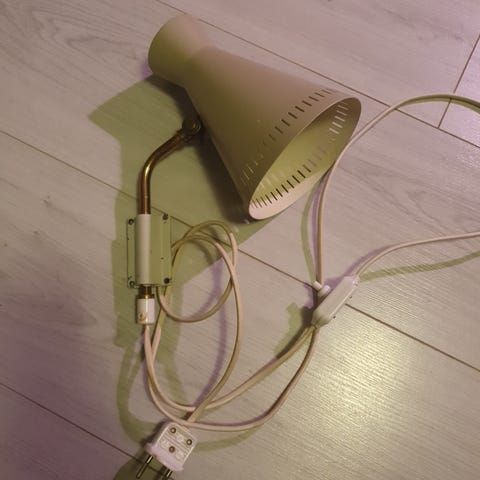 Detta är en vägglampa tillverkad av AJH (Järnarmatur Hillerstorp) under 1950-talet.