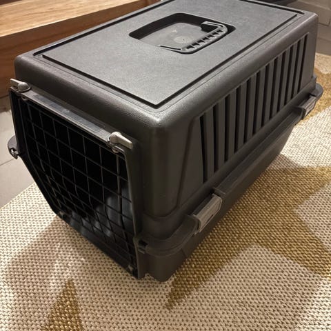 Hagen medföljer om man vill de. Går att montera bort hagen från buren så den får plats på släpet
