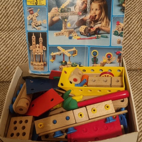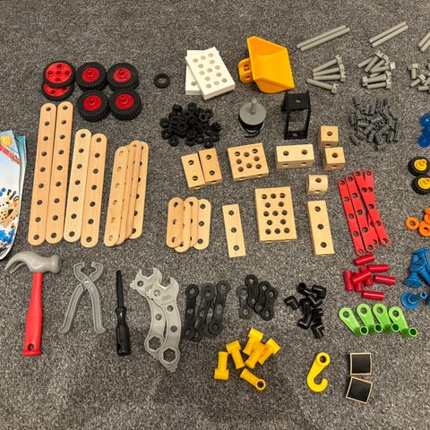 brio trä mekano briomek briomec verktyg hjul plattor hammare mejsel tång