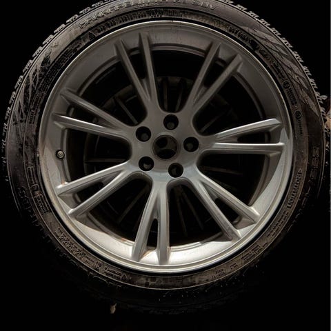 Två fälgar har ytliga repor, fullt möjliga att fixa med lackstift. Ej djupa skav.