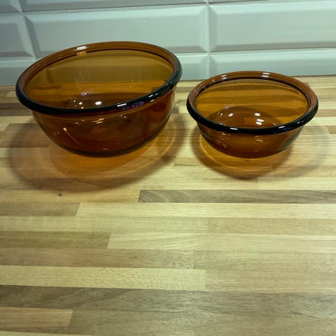 Snygga att ha sallad i eller annat. Mer åt det vinröda hållet i färg. Den största är 25 cm i diameter. 3 förvaringsskålar plast.