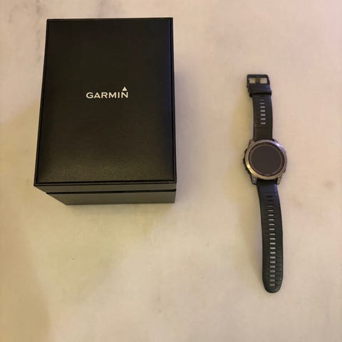 Orginalkvitto, laddare, originalkartong och ett extra Garmin QuickFit® 20 armband i